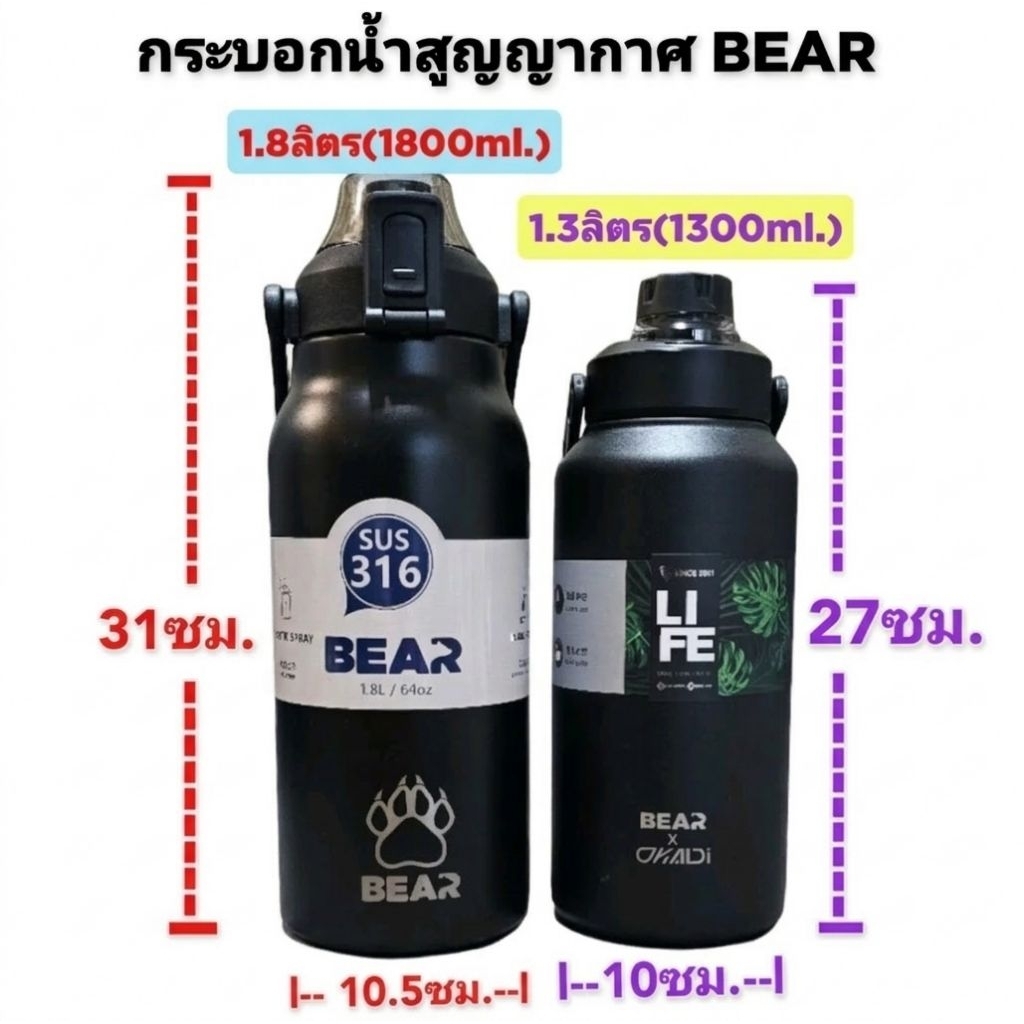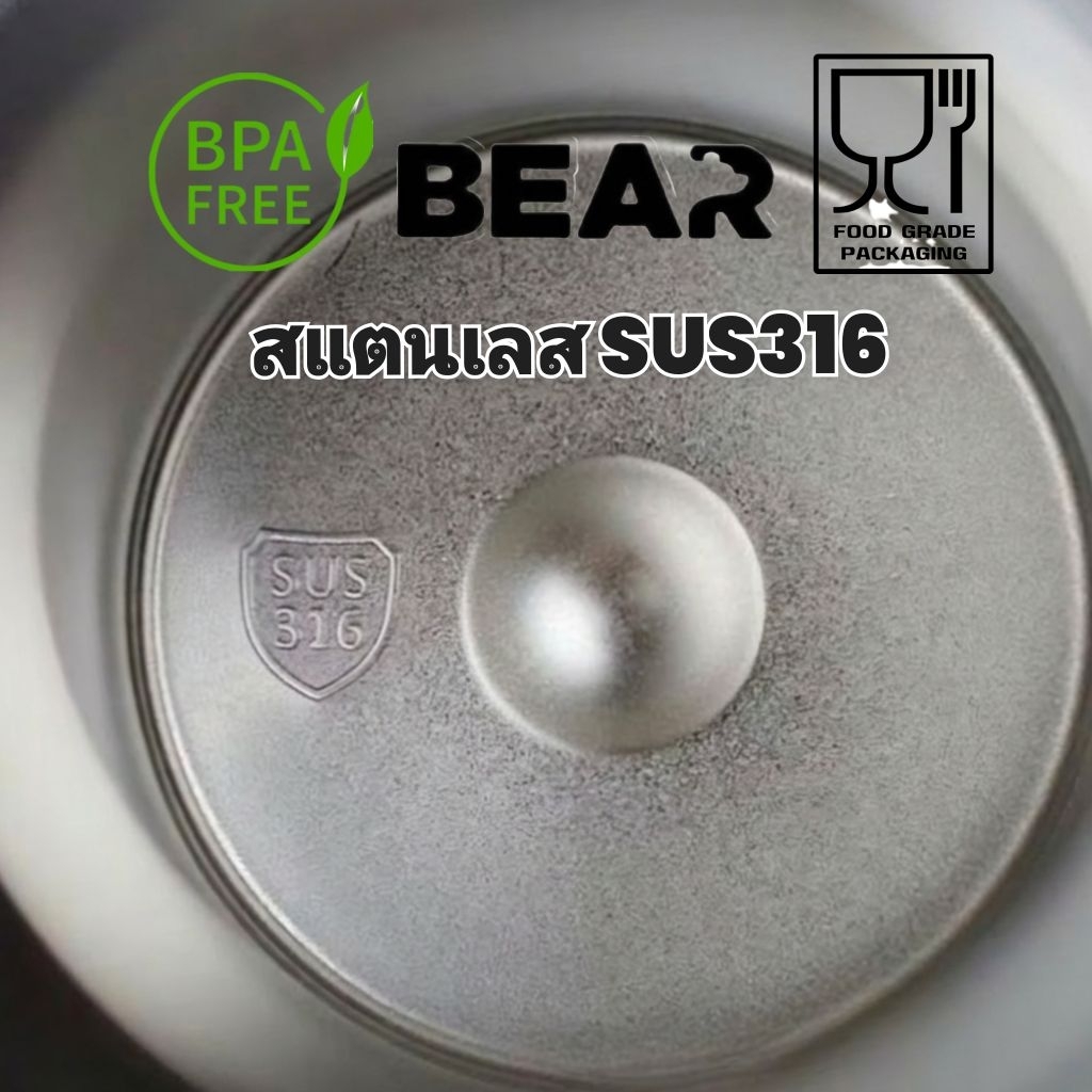 ส่งฟรี BEAR กระบอกน้ำเก็บความเย็นนาน30ชม. สแตนเลส316 ฝาล็อคพร้อมหลอด สี PowderCoat ไม่ลอก มีประกัน