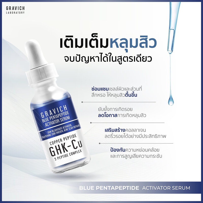 GRAVICH Blue Pentapeptide Activator Serum 30ml กราวิช เซรั่มสูตรคอปเปอร์เปปไทด์เข้มข้น.