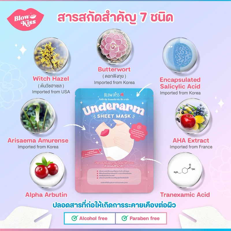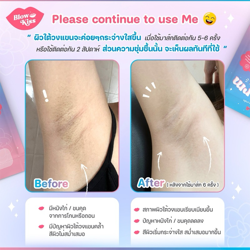 Blow Kiss แผ่นมาส์กสำหรับรักแร้ (แพ็ค 3 ซอง) เพื่อรักแร้เรียบเนียน ขาวกระจ่างใส ไร้กลิ่น