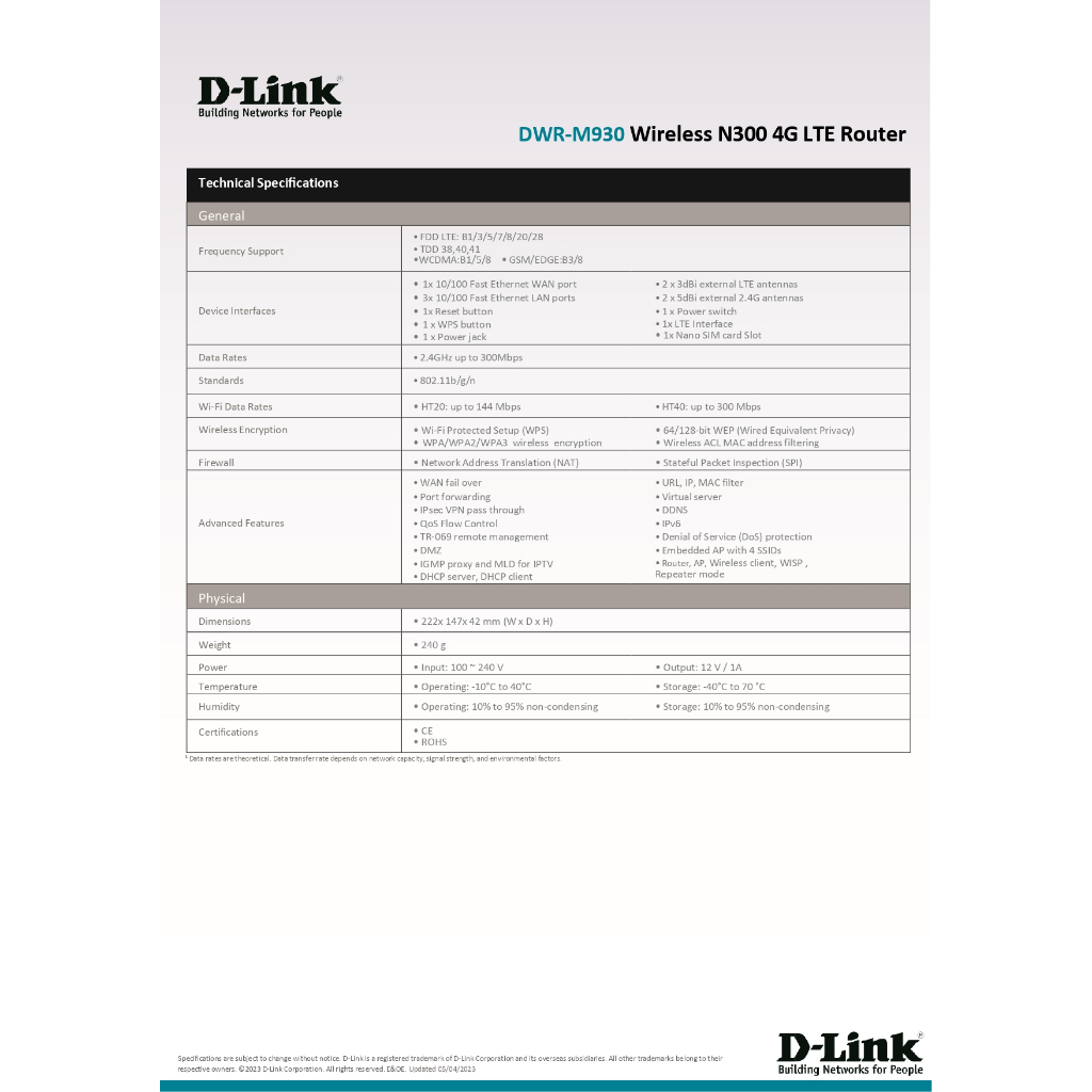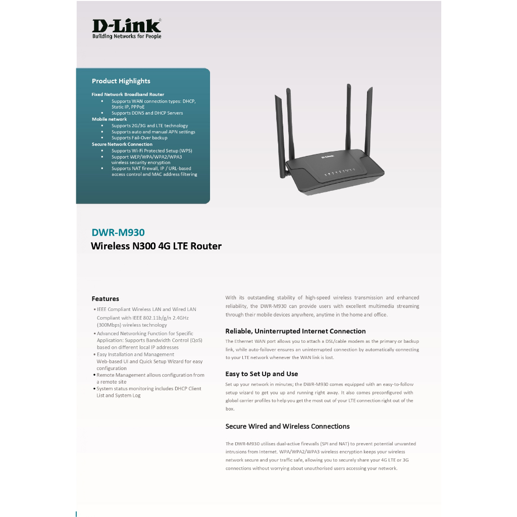 D-Link DWR-M930(แทนรุ่นDWR-M920) เร้าเตอร์ใส่ซิม Wireless N300 รองรับ 4G ทุกเครือข่าย ประกัน 3 ปี By Vnix Group