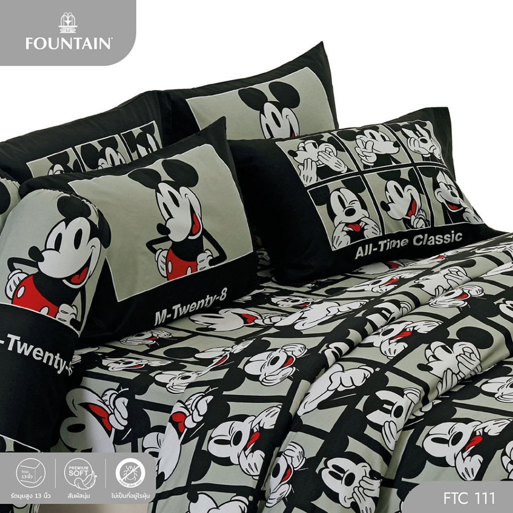 Fountain FTC111 การ์ตูน Mickey ลิขสิทธิ์แท้ Disney สัมผัสนุ่มลื่น ชุดเครื่องนอนฟาวน์เทน ผ้าปูที่นอน ผ้านวม