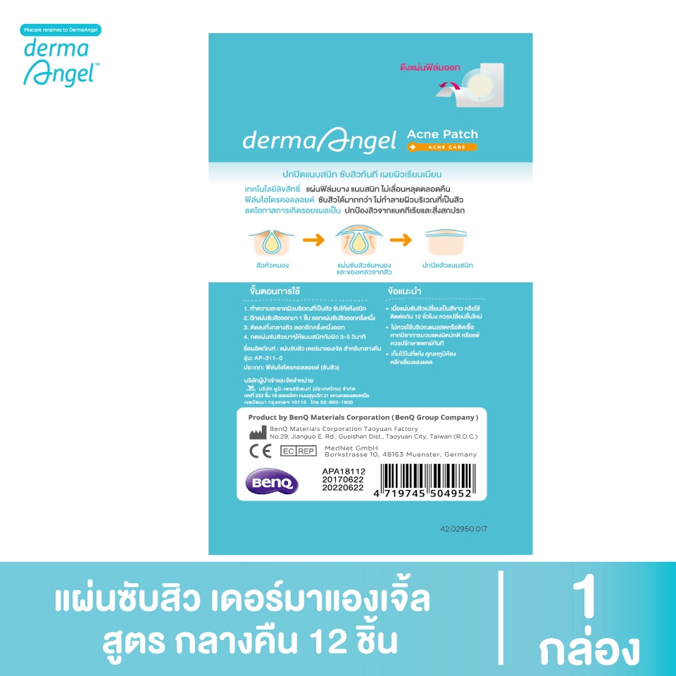 Derma Angel เดอม่า แองค์เจิ้ล แผ่นแปะสิวสูตรกลางคืน 12 ชิ้น 1 กล่อง