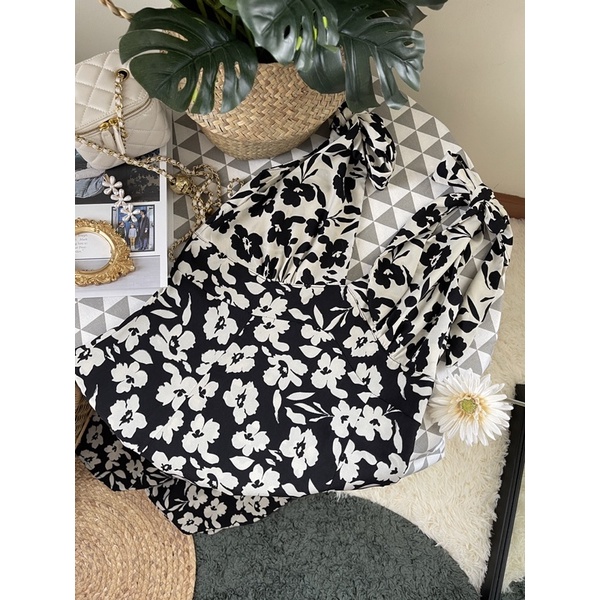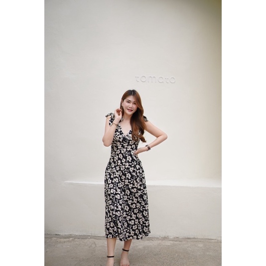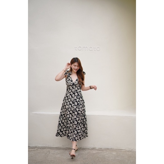 nooch.closet : เดรสยาวลายดอกไม้ Black Marin Dress