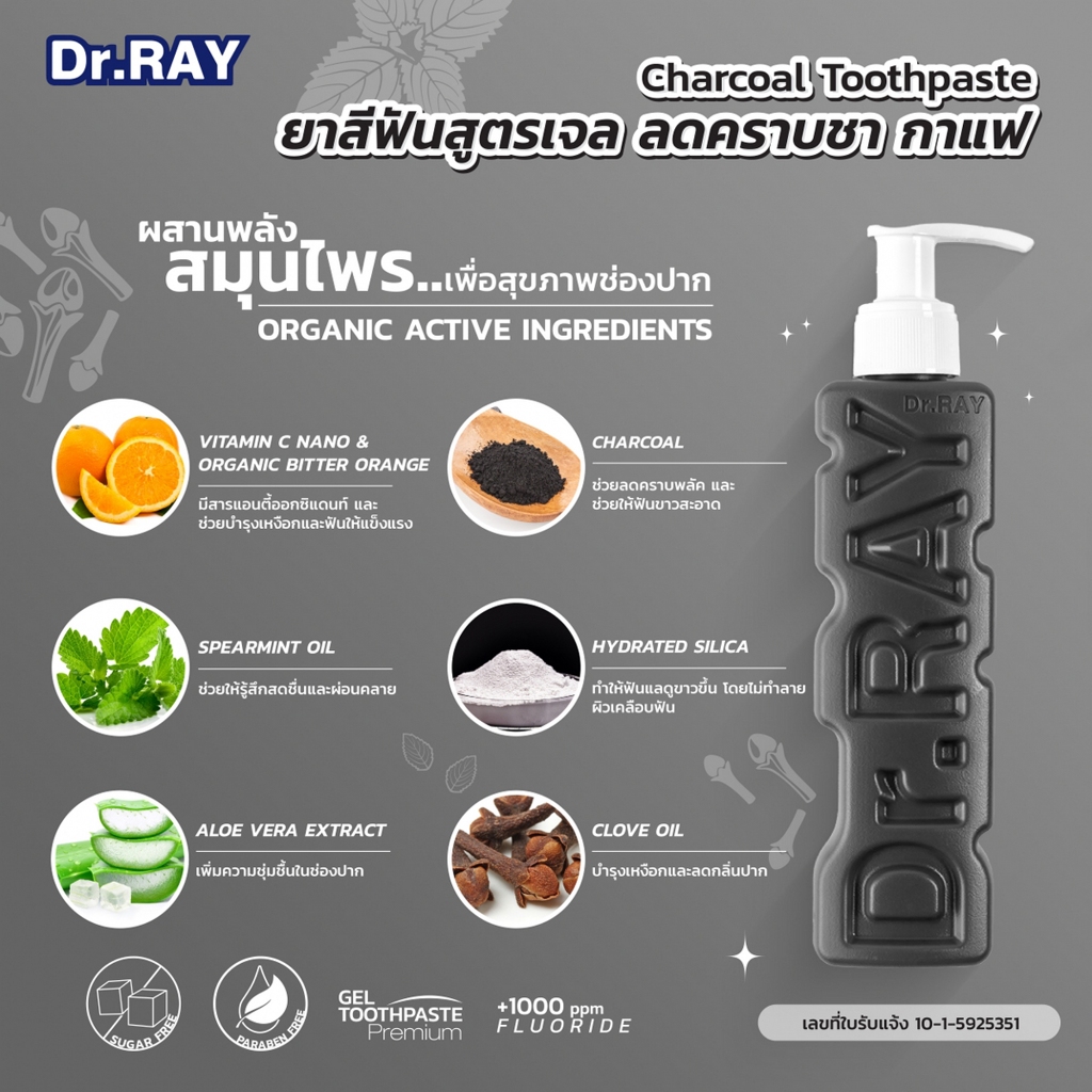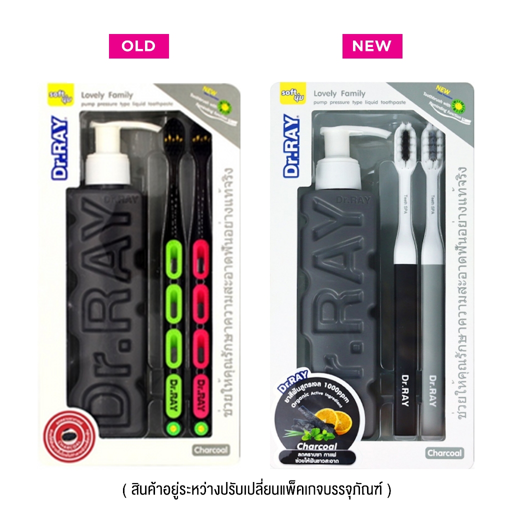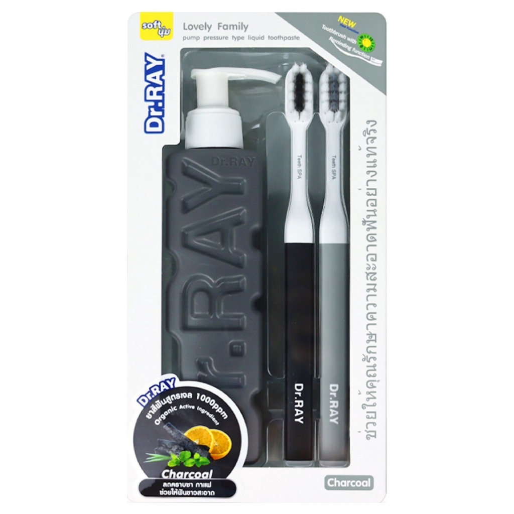 DR RAY - Lovely Family Charcoal T5A Set (เซ็ตยาสีฟันและแปรงสีฟัน)