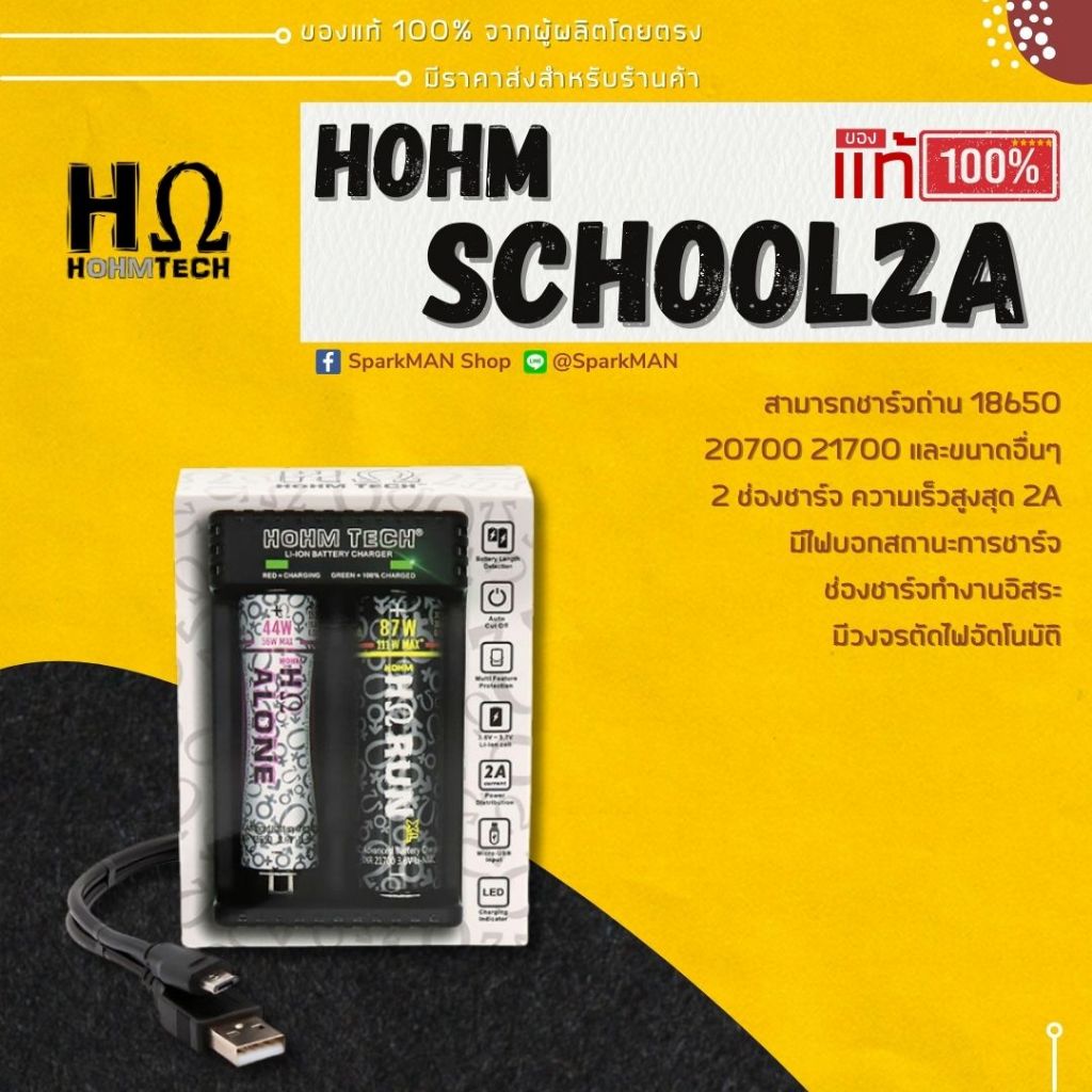 HOHM SCHOOL 2A แท้ เครื่องชาร์จถ่าน 2 ช่อง ปลอดภัย ใช้ง่าย ชาจเร็วสำหรับ Li-ion 18650 21700 SparkMAN