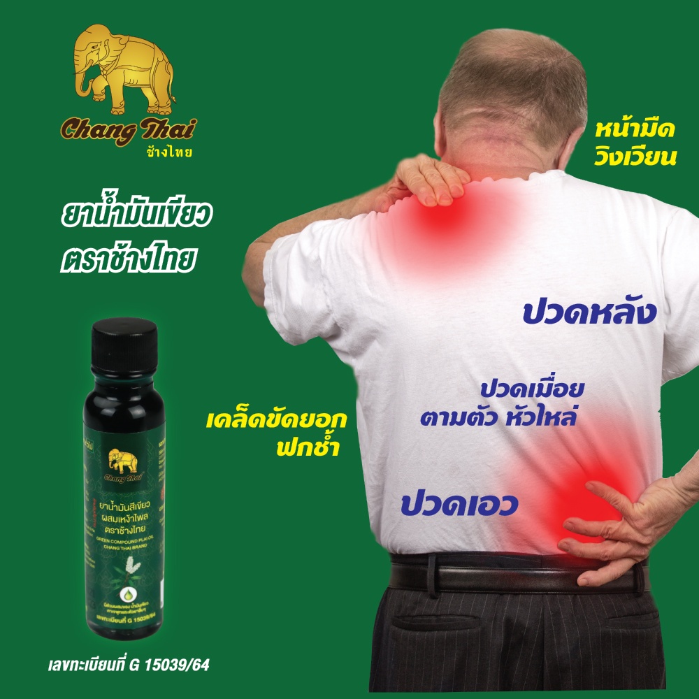 ยา น้ำมันสีเขียว ผสมเหง้าไพล ตราช้าง