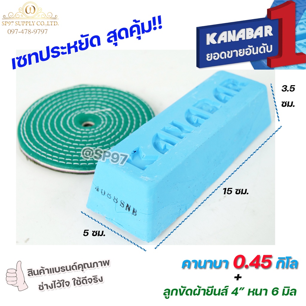 KANABAR คานาบ้า ยาขัดฟ้า ไขปลาวาฬ ยาขัดเงา ก้อนละ 0.45 กิโล + ลูกขัดผ้า 4" หนา 2หุน 1 ลูก (เซทสุดคุ้ม)