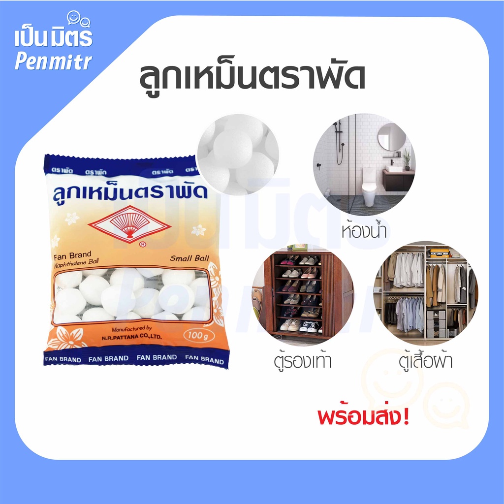 ลูกเหม็นตราพัด ขนาด 100g Mothballs ลูกเหม็นใช้ง่าย อย่างดี ลูกเหม็นดับกลิ่น ไล่หนู ไล่แมลง เป็นมิตร Penmitr