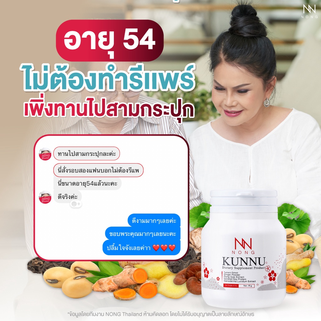 NONG KUNNU อาหารเสริมคุนนู๋ สมุนไพรวัยทอง มดลูกต่ำ นอนไม่หลับ ร้อนวูบวาบ ฉี่เล็ด ปรับสมดุลภายใน