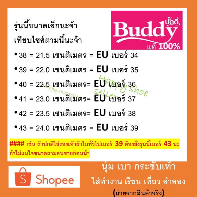 รองเท้า buddy หญิง รุ่น 101 Basis (ผ่าหน้า) (เทียบไซส์ EU 34-39)