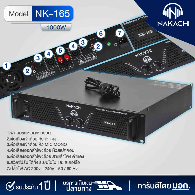 เพาเวอร์เเอมป์ เครื่องขยายเสียง แอมป์ขยายเสียง NAKACHI Nk-165 รับประกัน1ปี 1000วัตต์ สำหรับกลางแจ้ง