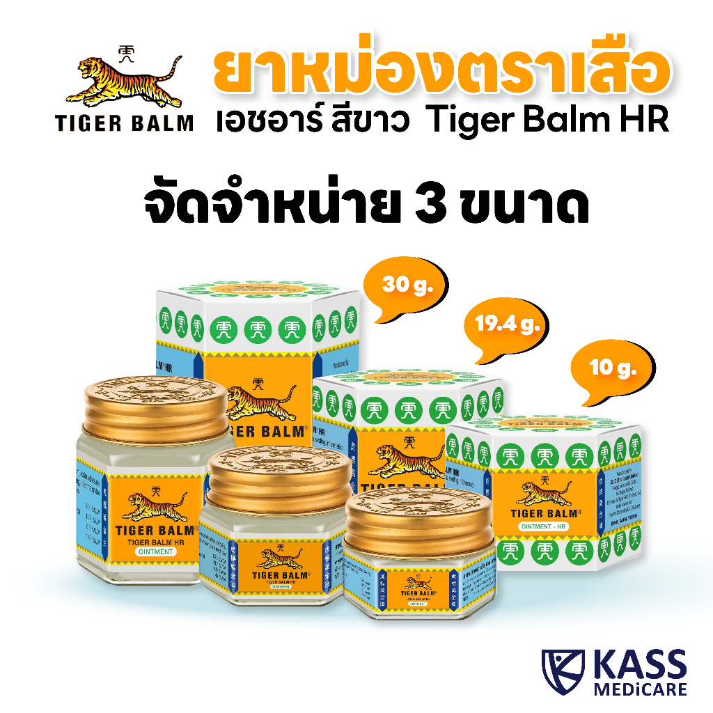 ยาหม่องตราเสือ เอชอาร์ สีขาว - Tiger Balm HR : ขนาด 10 g, 19.4 g, และ 30 g (1 ขวด)