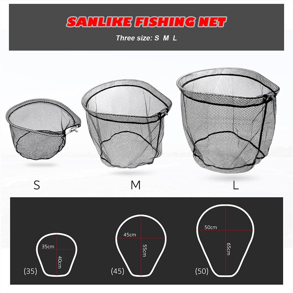Sanlike แบบพกพาตกปลา Landing สุทธิพับยาง PE ตาข่ายอลูมิเนียมแหวนพับตกปลา Dip สุทธิ