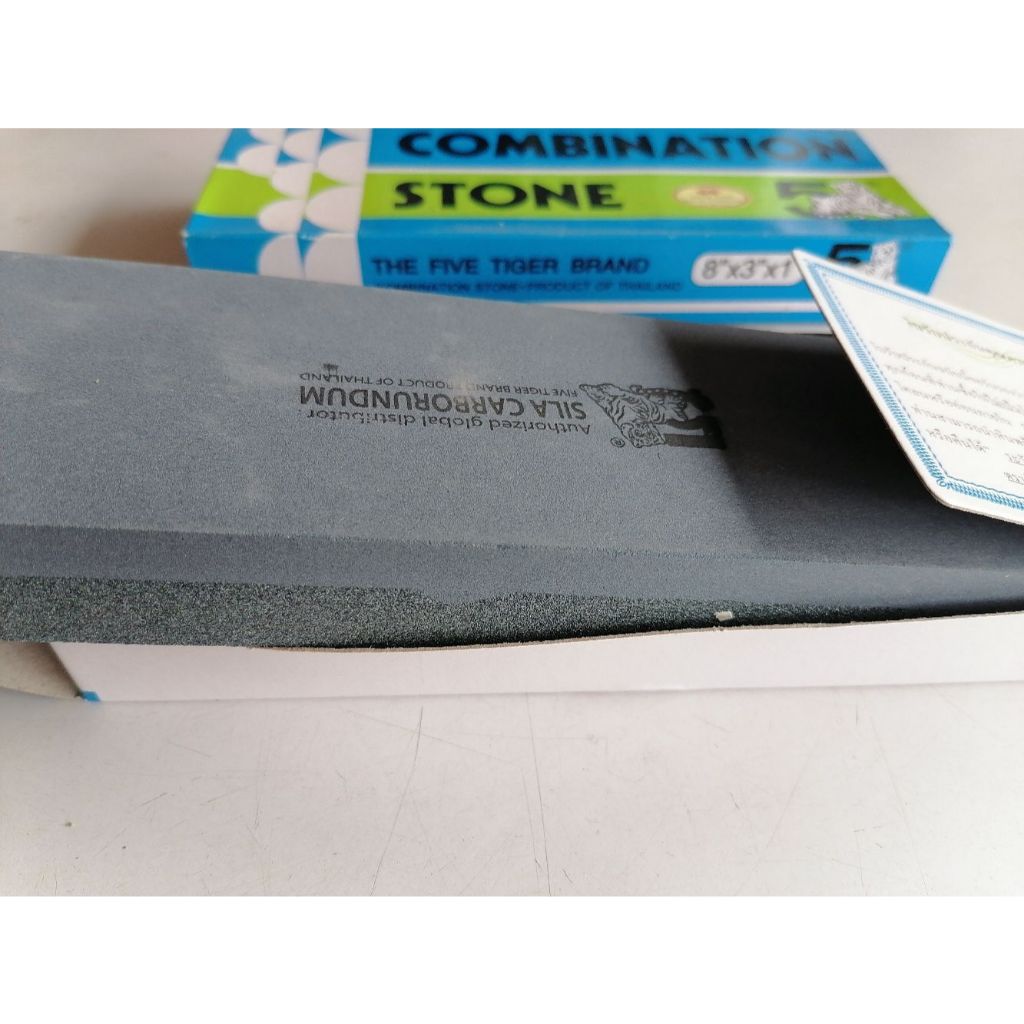 หินลับมีดห้าเสือของแท้(กล่องฟ้า) 2หน้า 8X3X1นิ้ว