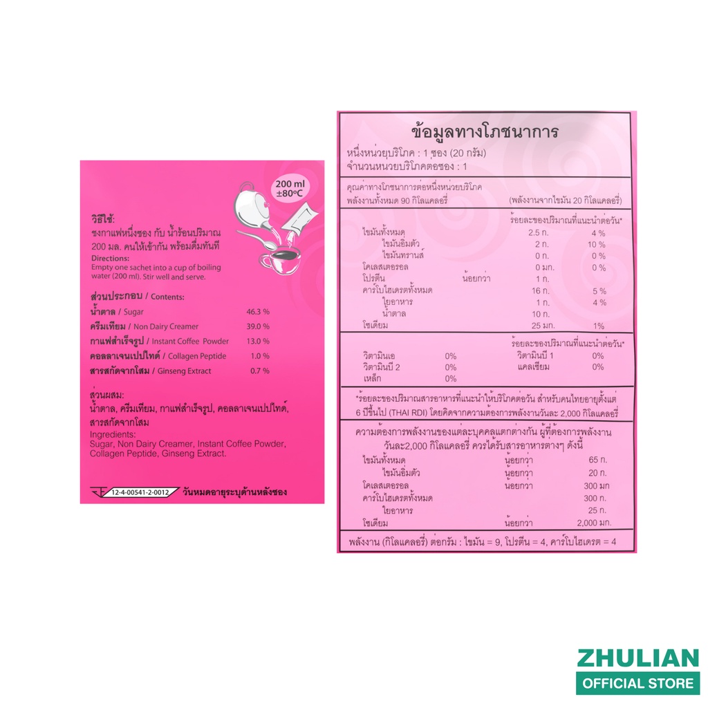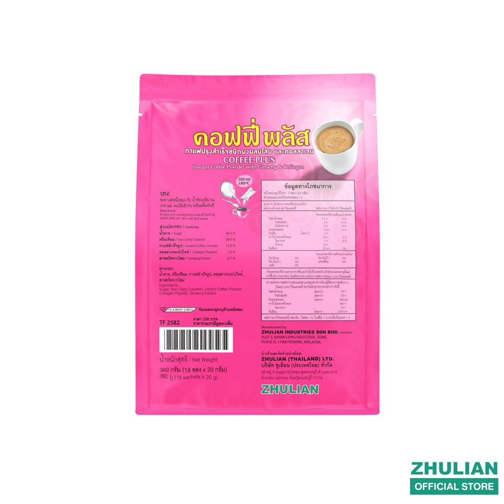 คอฟฟี่ พลัส กาแฟปรุงสำเร็จชนิดผงผสมโสมและคอลลาเจน (18 ซอง x 20 กรัม) TF2582