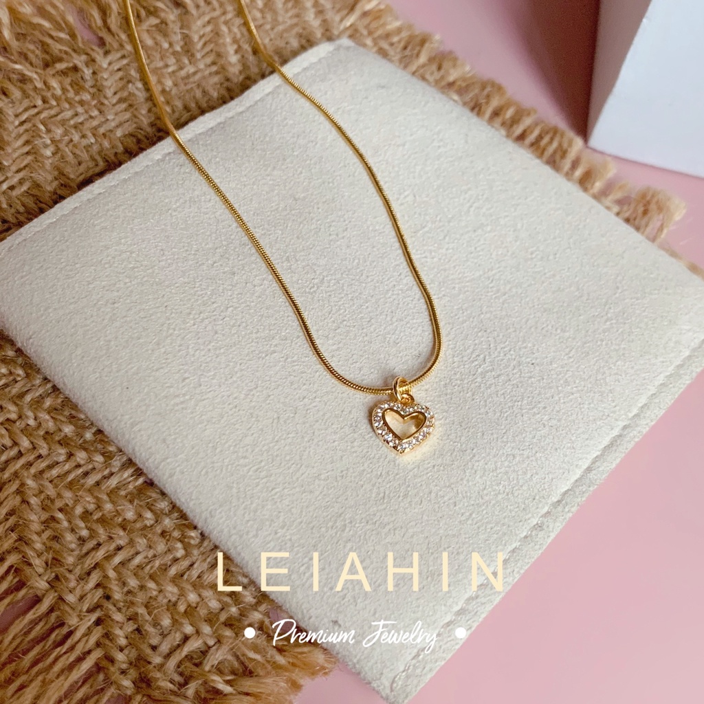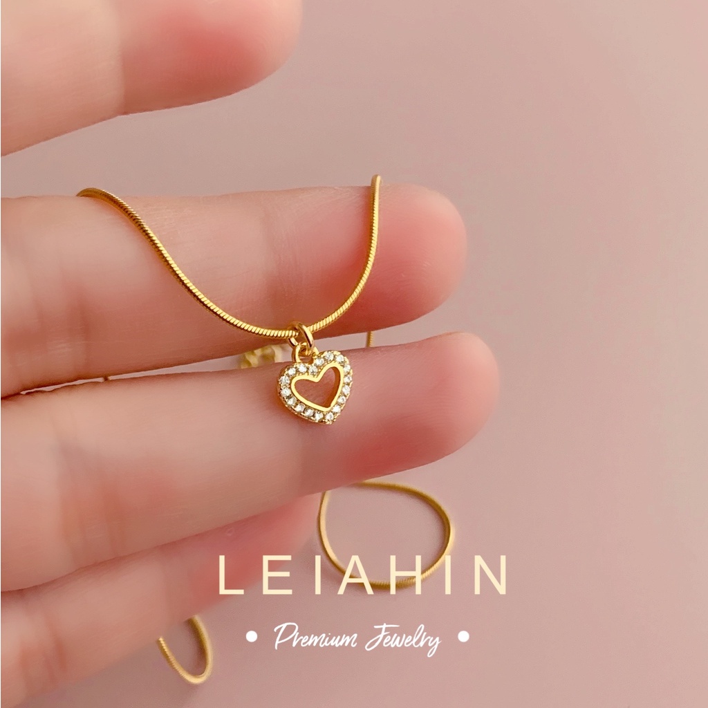 LEIAHIN สร้อยคอสเตนเลส ชุบทอง 18k จี้รูปหัวใจ ประดับเพทาย ขนาดเล็ก เครื่องประดับ สําหรับผู้หญิง ของขวัญวันเกิด