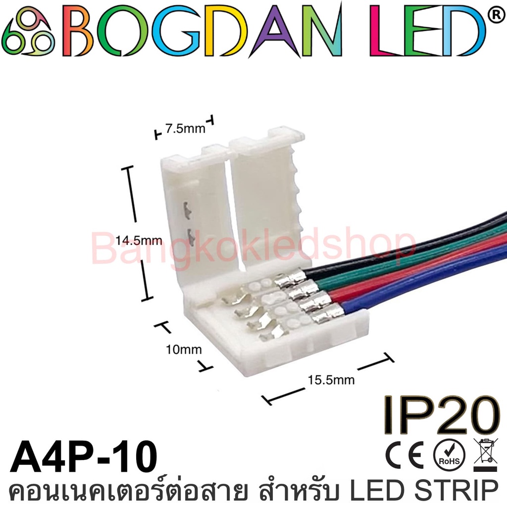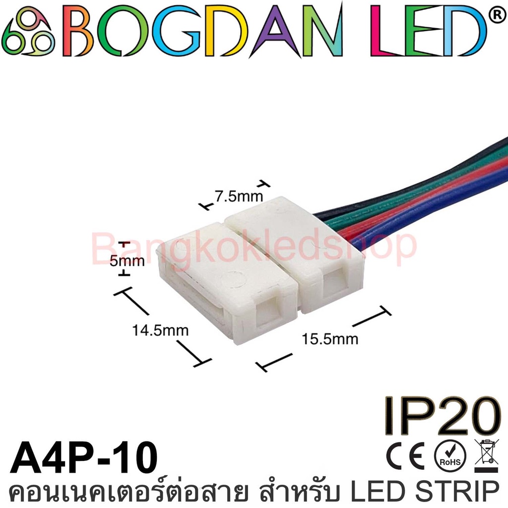 Connector A4P-10 แบบมีสายไฟสำหรับไฟเส้น LED แบบ RGB กว้าง 10MM ใช้เชื่อมต่อไฟเส้น LED (ราคา/1ชิ้น)
