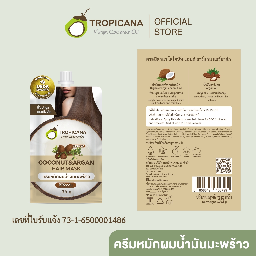 [แพ็ค 6ซอง] Tropicana | ทรอปิคานา ครีมหมักผมน้ำมันมะพร้าว 35 G แพ็ค6ซอง
