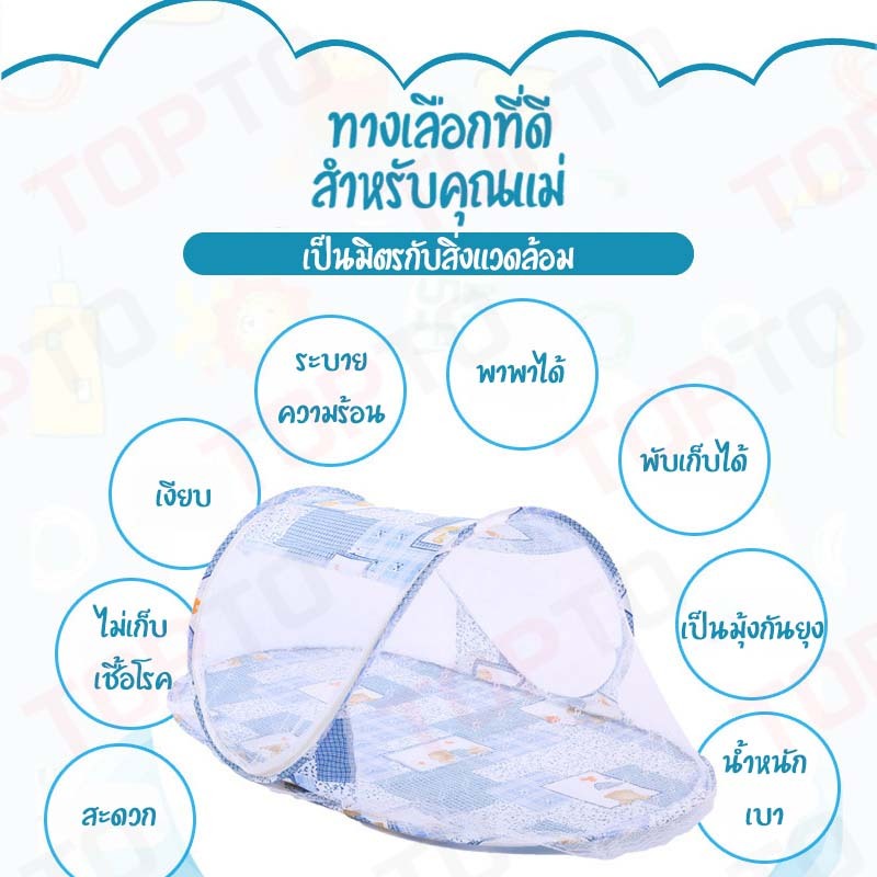 H65-มุ้งครอบเด็กแบบพกพา พับเก็บได้ ป้องกันยุงและแมลง 100% ระบายอากาศดี หลับสบาย มุ้งครอบเด็กอ่อนแบบพับได้ ขนาด 100x60ซม.