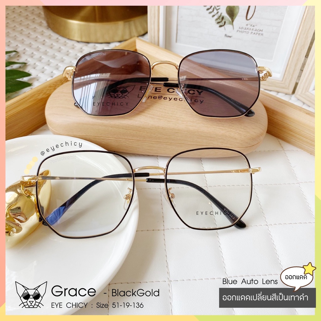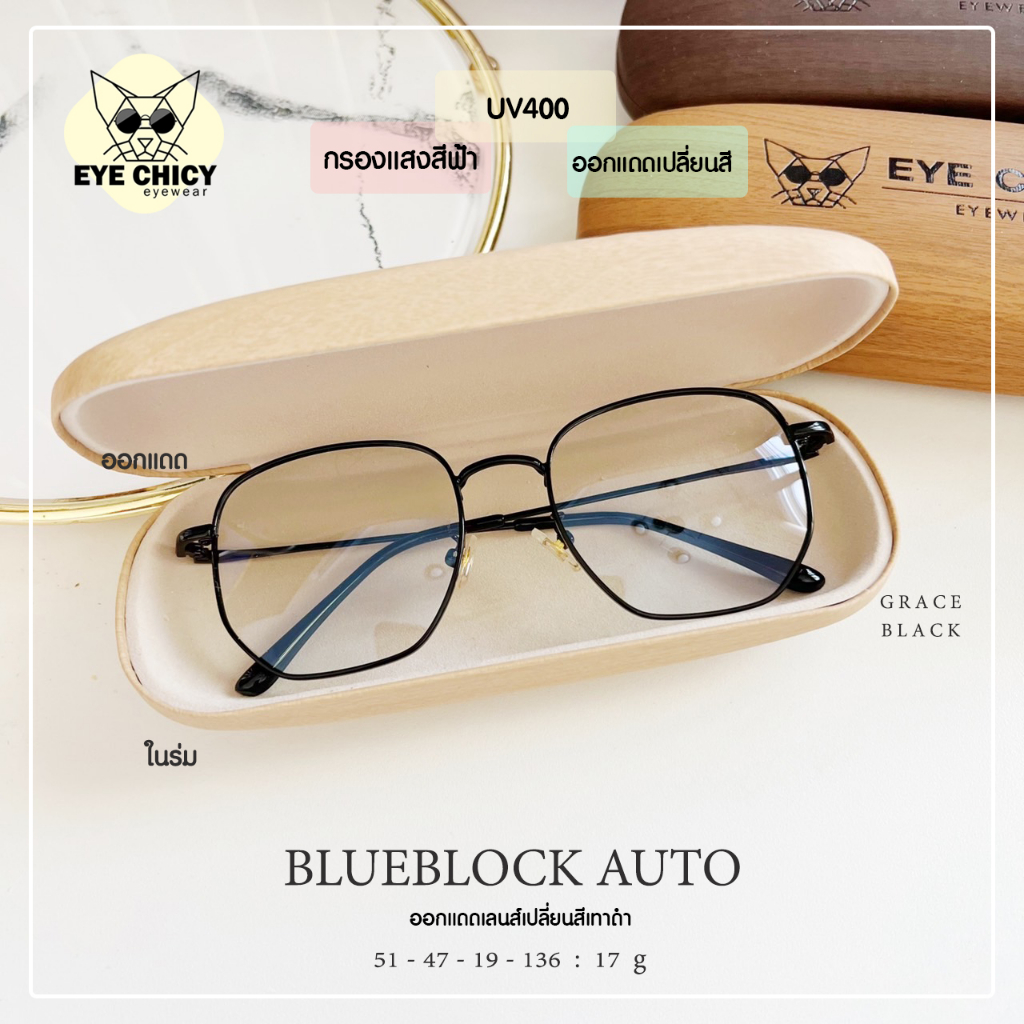 แว่นกรองแสงบลูบล็อก ออโต้แท้ ( BlueBlock + Auto ) กรองแสงสีฟ้า รุ่น 247523 EYECHICY ออกแดดเลนส์เปลี่ยนสี แว่นกรองแสงคอม