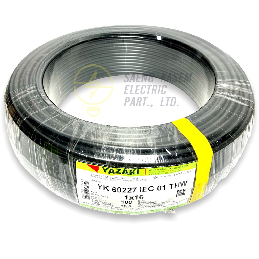 ราคารวมVAT❗️สายไฟ THW 1 x 16 SQmm 100m สีดำ ยี่ห้อ YAZAKI สายเดี่ยวทองแดง สายเมน