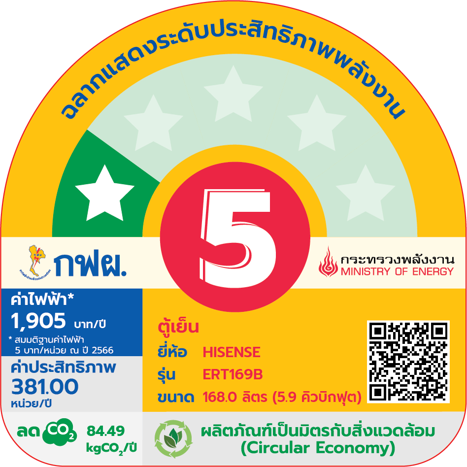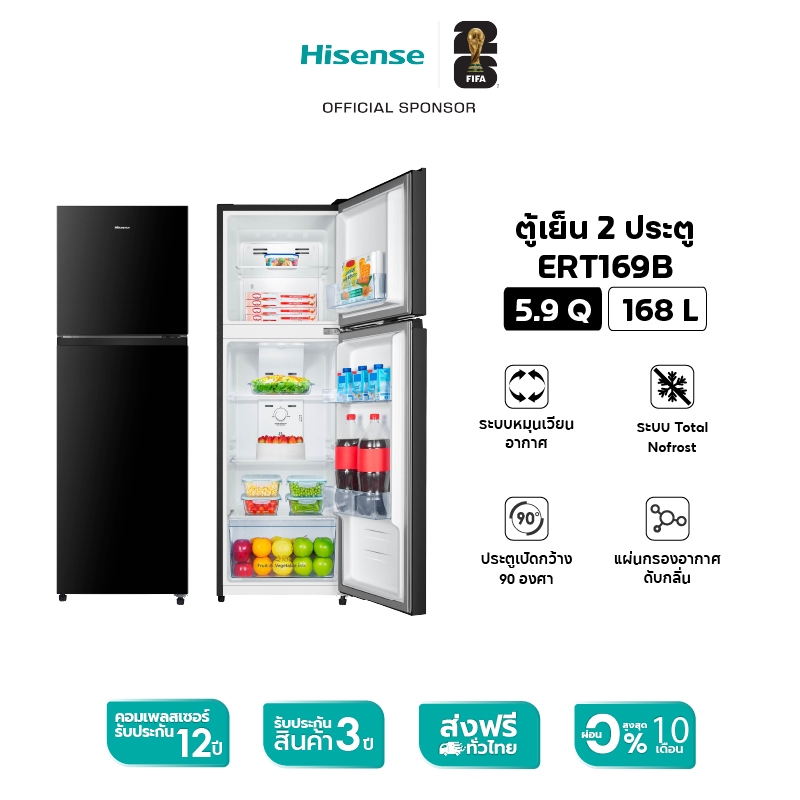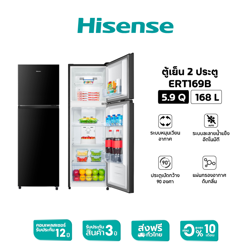 [Presale พร้อมส่ง 25 เม.ย] Hisense ตู้เย็น 2 ประตู :5.9Q / 168 ลิตร รุ่น ERT169B