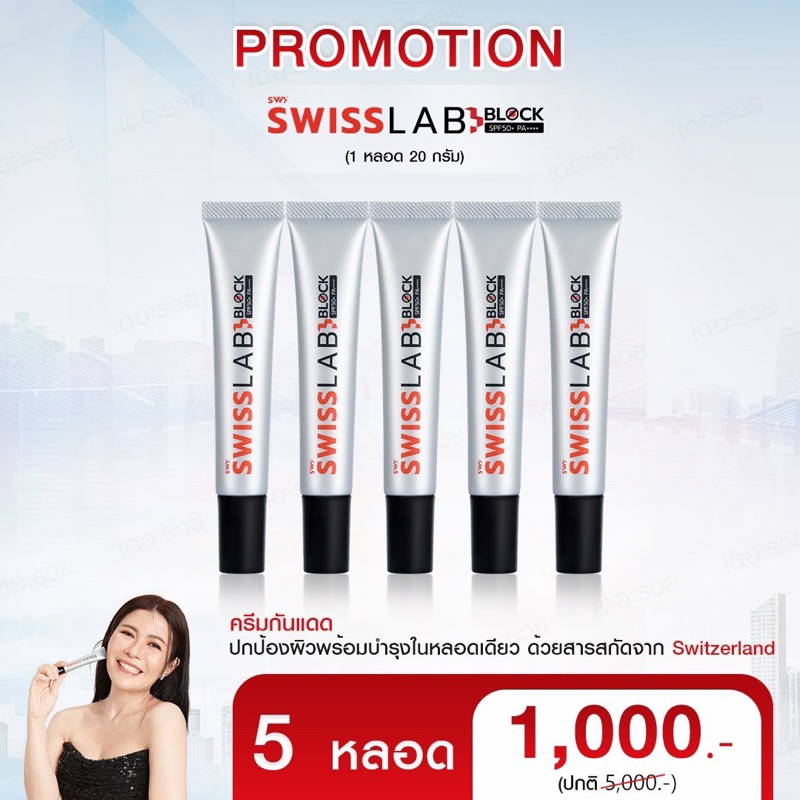 สวิสแล็บ Swiss Lab Block SPF 50+ PA ++++ ครีมกันแดดสวิสแล็บ (5 หลอด)