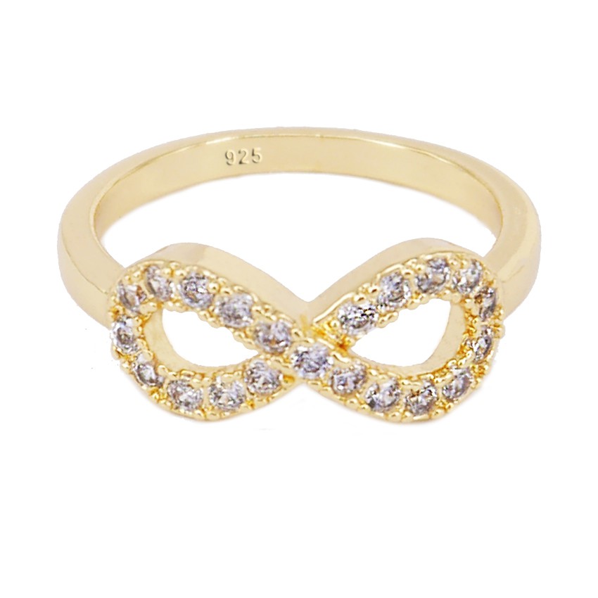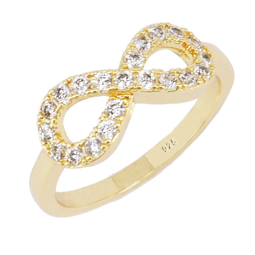 Tips Gallery แหวนเงินแท้ 925 หุ้มทองคำแท้ 24K เพชรCZ รุ่น ความรักไม่มีที่สิ้นสุด Le Infinity Eternity love Design TRS075
