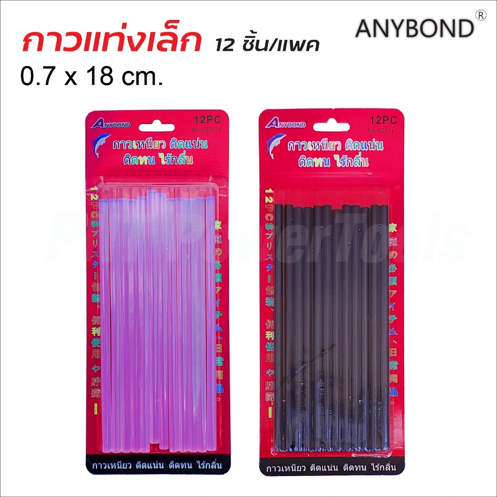 ANYBOND กาวแท่งเล็ก สีใส สีดำ กาวแท่งร้อน กาวแท่งเล็ก เหนียวติดทน ราคาโรงงาน คุณภาพดี [ แพ็ค 12 แท่ง ]