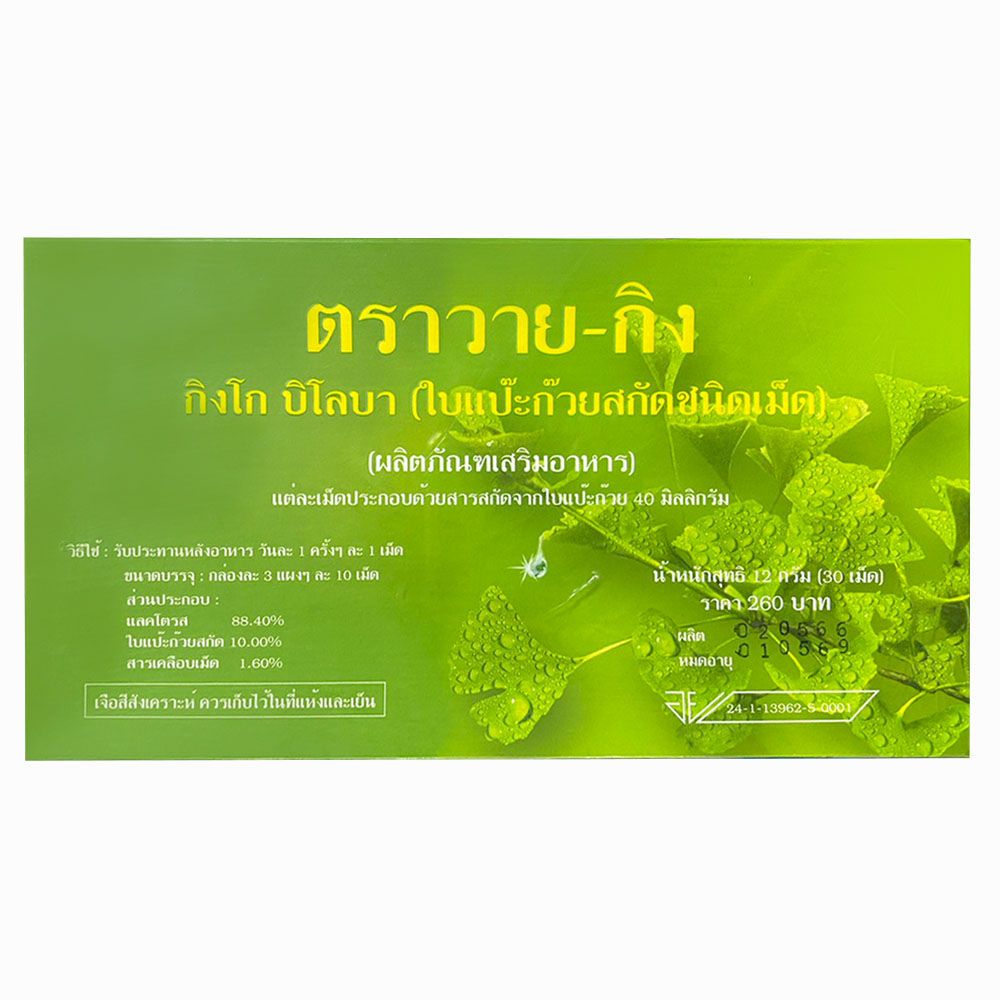 Y-Gink Ginkgo Biloba วาย กิง ใบแป๊ะก๊วยสกัด 30 เม็ด [5 กล่อง] HH 7201 ตัวช่วยคนทำงานและวัยเรียน