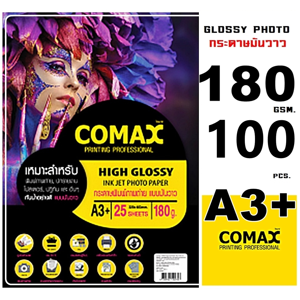 กระดาษอิงค์เจ็ท A3+แบบมันวาว 180 แกรม (แพ็ค 25 แผ่น ) กระดาษโฟโต้ผิวมันวาว เนื้อกระดาษคุณภาพสูง พร้อมคุณสมบัติกันน้ำ