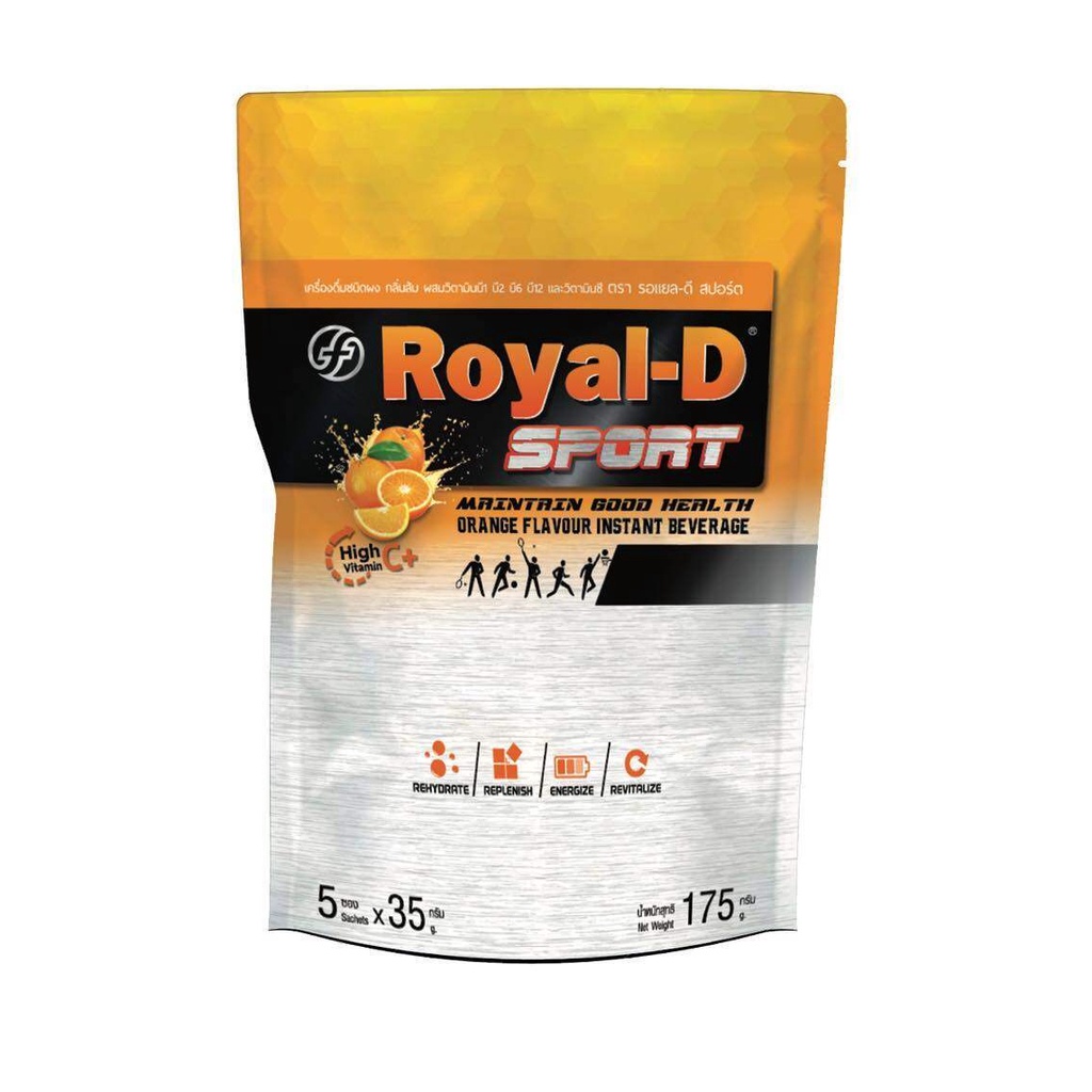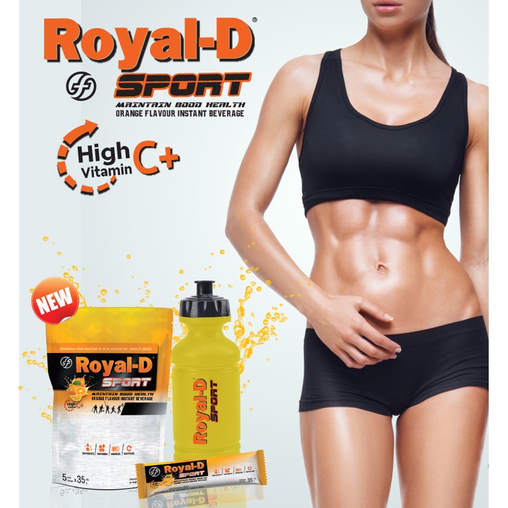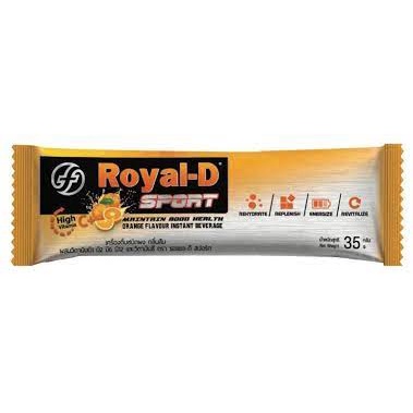 ROYAL-D SPORT เครื่องดื่มชนิดผงละลายน้ำ กลิ่นส้มผสมวิตามินบีและซี ลดการเป็นตะคริว