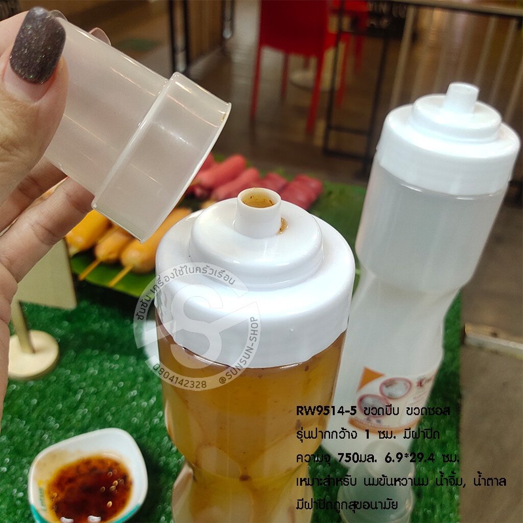 427. ขวดบีบ ขวดซอส RW9095-5(450มล.)/ RW9514-5(750มล.) มีฝา สำหรับ น้ำเชื่อม นมข้น น้ำจิ้ม ขวดบีบทวิสต์