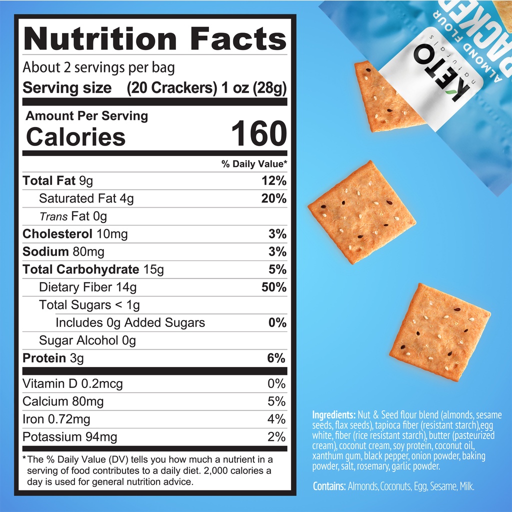KETO NATURALS CRACKERS SEA SALT Pack2) low carb crackers gluten free/แครกเกอร์ รส เกลือทะเล แพ็ค 2