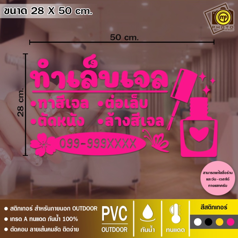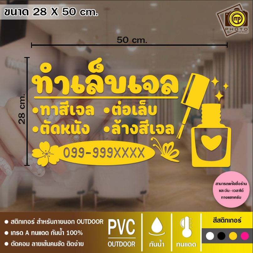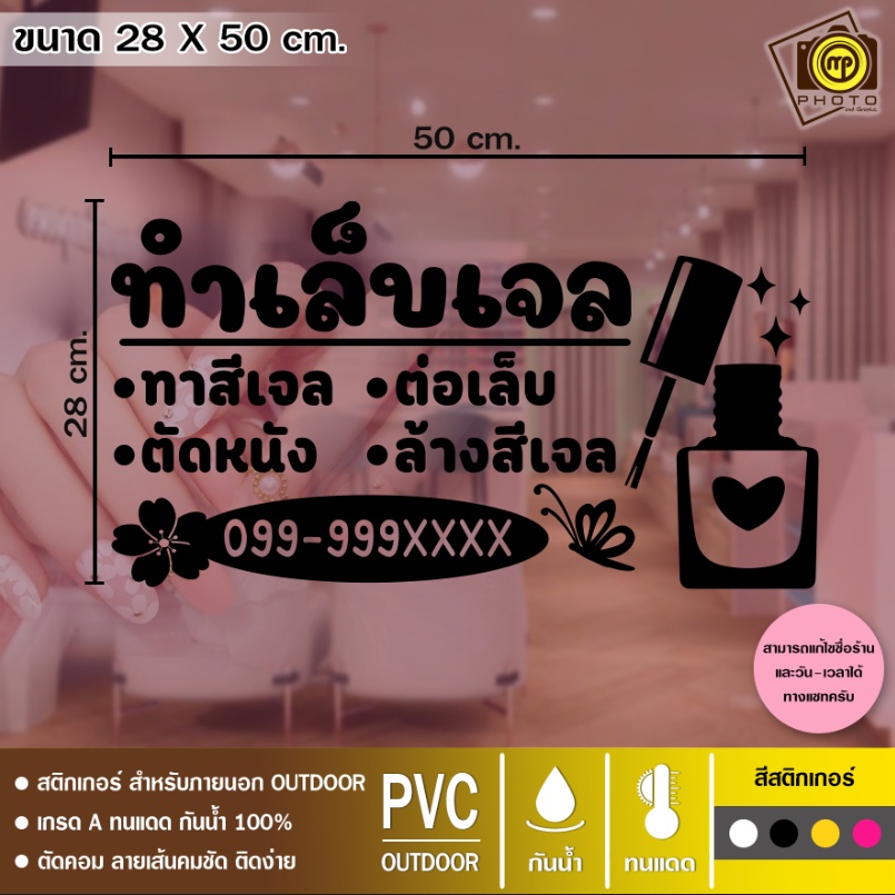 Nail15 สติกเกอร์ PVC ติดกระจก ร้านทำเล็บ ขนาด 25 x 50 cm. สติกเกอร์ติดกระจกเนื้อ PVC กันน้ำ 100% ทนทาน ติดง่าย