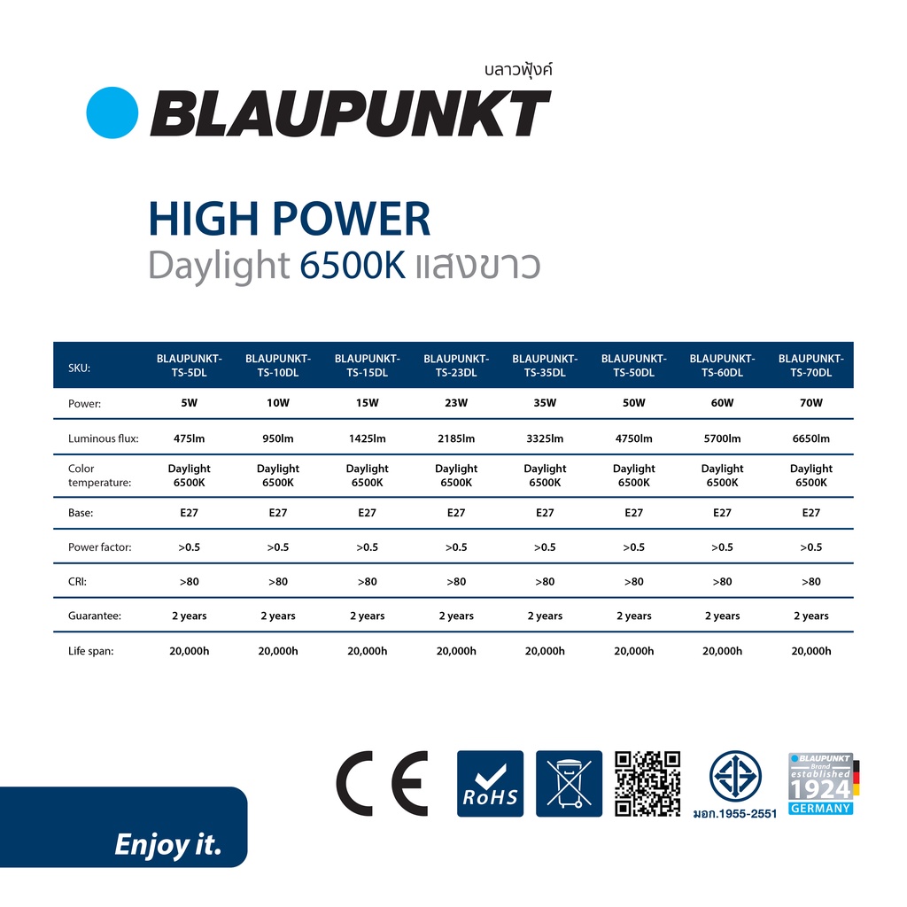 BLAUPUNKT หลอดไฟไฮเพาเวอร์ 5W 10W แสงขาว แสงวอร์ม ขั้วE27 LED HIGH POWER มาตรฐานเยอรมัน