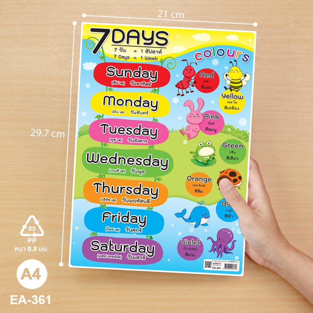 OST โปสเตอร์ความรู้ สื่อการเรียนการสอน ขนาด A4 เวลา วัน เดือน