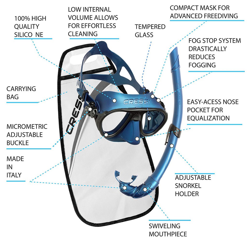 CRESSI UNISEX CALIBRO AND CORSICA SNORKELING SET - ONE SIZE ชุดหน้ากากดำน้ำพร้อมท่อหายใจ สำหรับน้ำตื้น/น้ำลึก