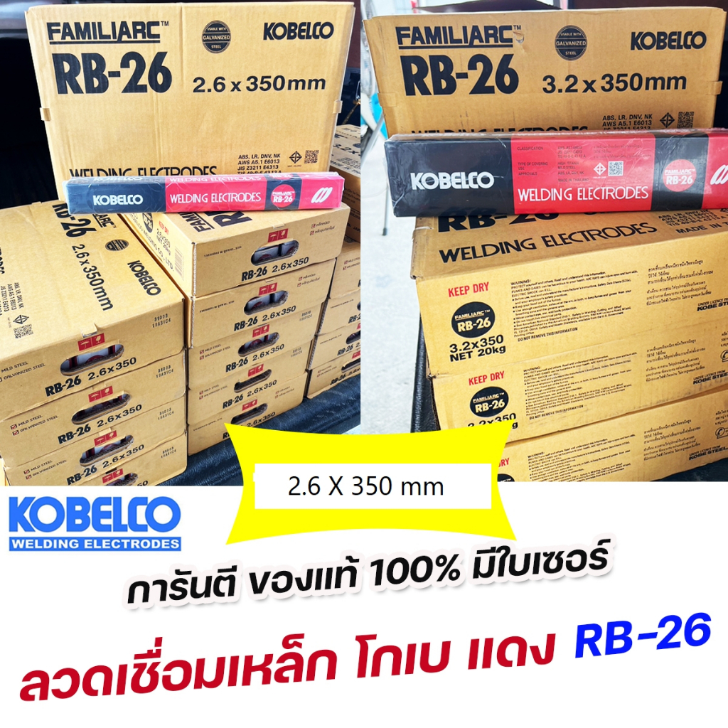 KOBE ลวดเชื่อม ไฟฟ้า โกเบ RB-26 ขนาด 2.6 -1 ห่อ 2กิโล เชื่อมเหล็กเหนียว เหล็กบาง ของแท้100% (มีใบเซอร์)
