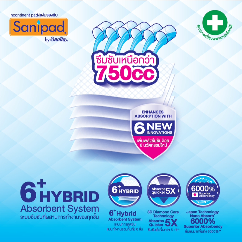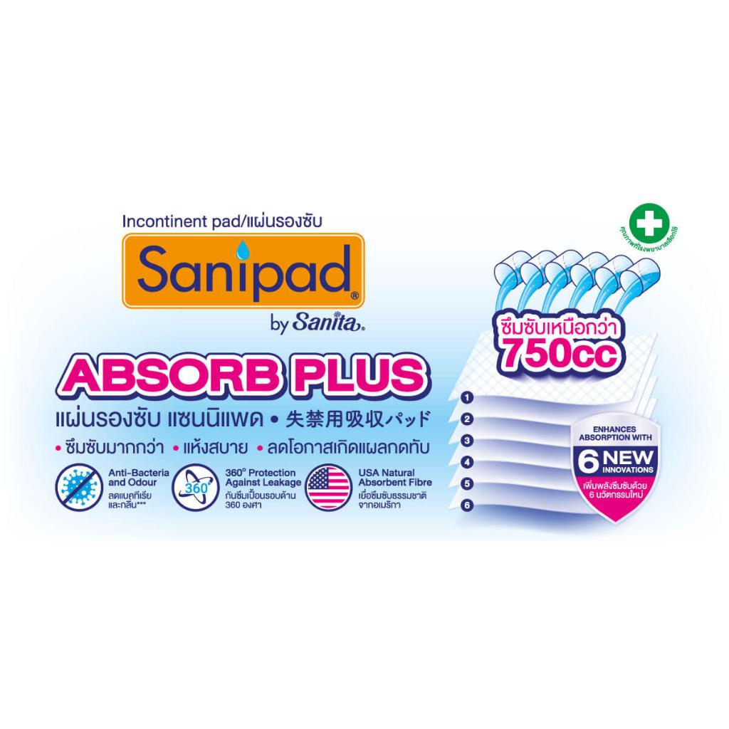 Sanipad / แซนนิแพด แผ่นรองซับ (ไซส์ L : 45 x 70ซม.) ซึมซับพิเศษ 750cc 10แผ่น/ห่อ