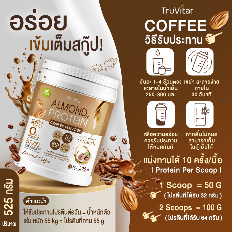 ðĨāļŠāđāļāđāļ§ āļŠāđāļāļāļĢāļĩ ð (1āļāļ·āđāļāļāļđāđ) TruVitar Almond Protein Plus Collagen āļĢāļŠāļāļēāđāļ āļāļāļēāļ 525 āļāļĢāļąāļĄ āđāļāļĢāļāļĩāļāļŠāļđāļ 32g āļāļĨāļīāđāļāļŦāļāļĄ āļāļēāļāļāđāļēāļĒ
