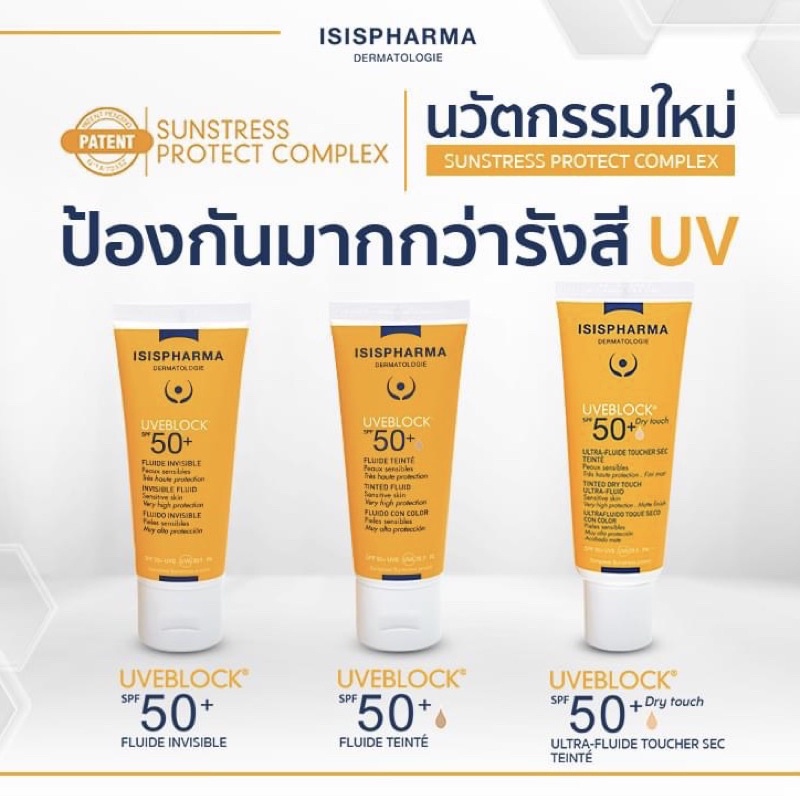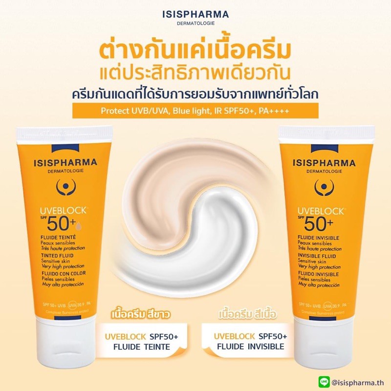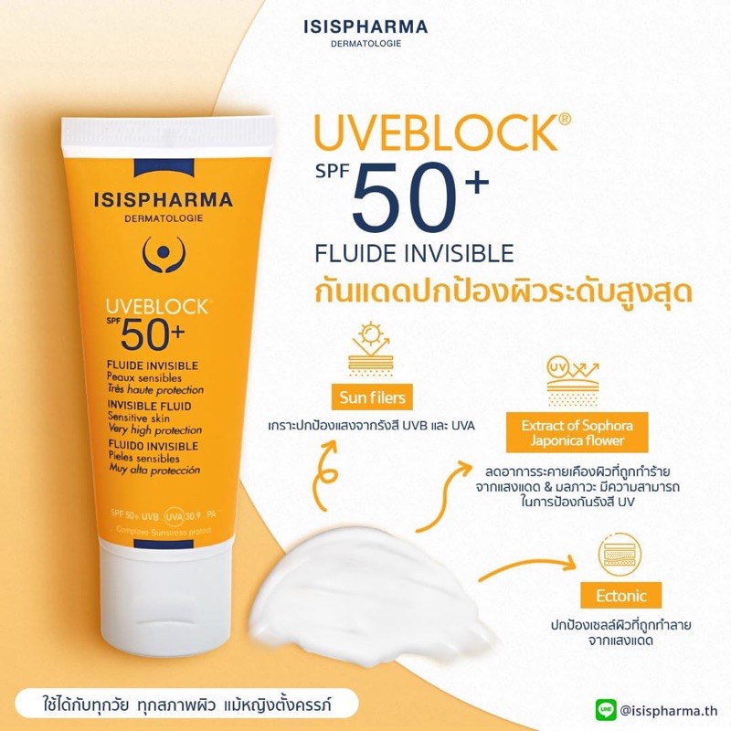 ISISPHARMA UVeBlock SPF50+ 40ml ครีมกันแดด มีเนื้อสีขาวน้ำนม และสีเบจ ป้องกัน ผิวหมองคล้ำ