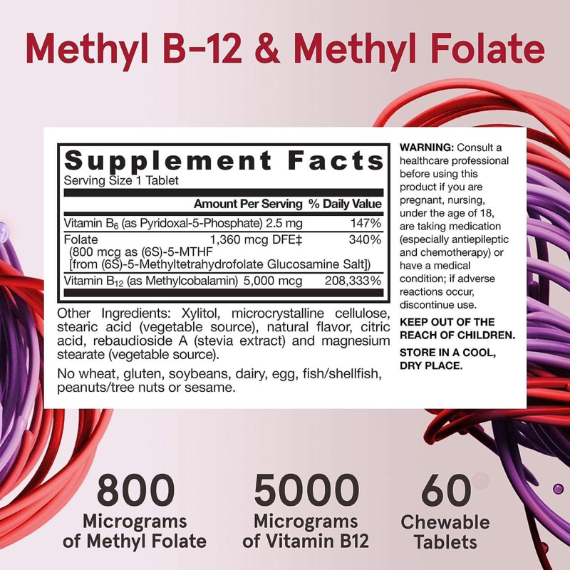 ✅พร้อมส่ง วิตามินบี12 + โฟเลต🔻Jarrow Formulas, Vitamin B12 + Folate, Methyl B-12 & Methyl Folate,