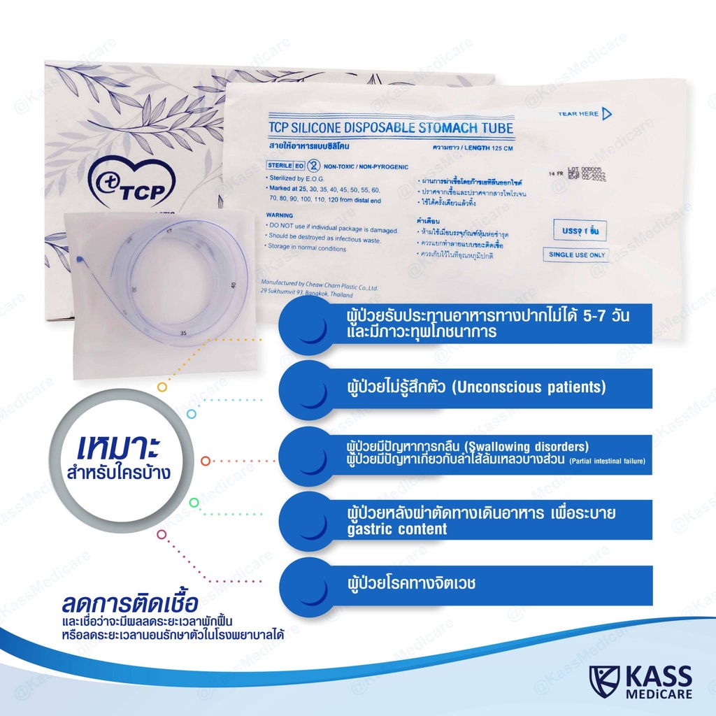(5 ชิ้น) สายให้อาหารทางจมูก แบบซิลิโคน รุ่นปลายปิด no.14,16 NG Silicone Disposable Stomach Tube