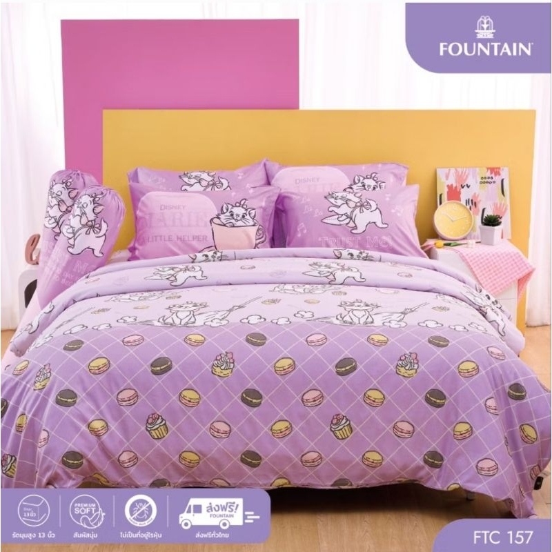 ❣️Marie❣️ผ้าปูที่นอน+ผ้านวม แมวมาลี (ลิขสิทธิ์แท้ Disney) ยี่ห้อ FOUNTAIN