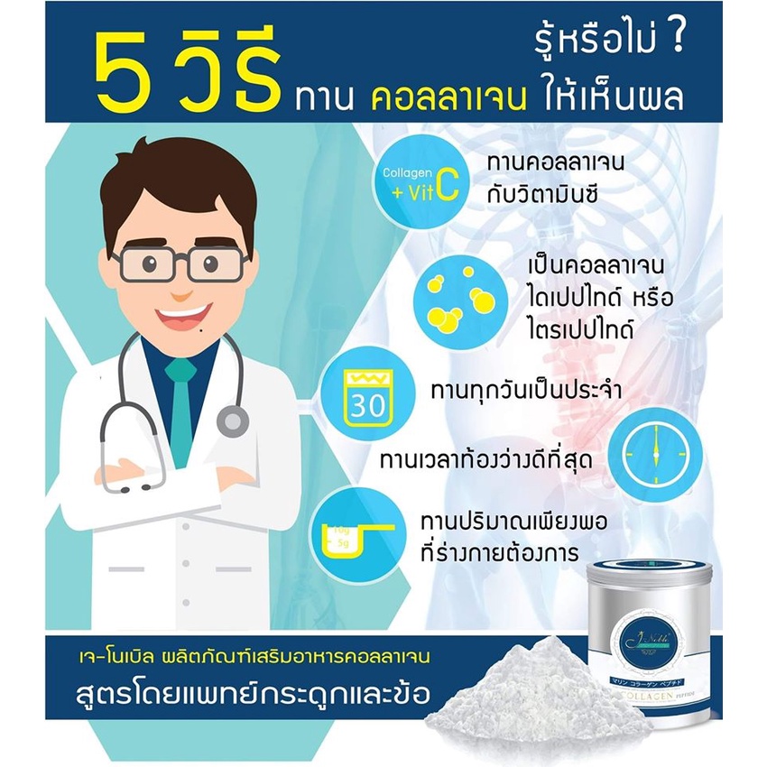 500กรัม 1กระป๋อง เจโนเบิล ไดเปปไทด์ คอลลาเจน Type 1 Type 2