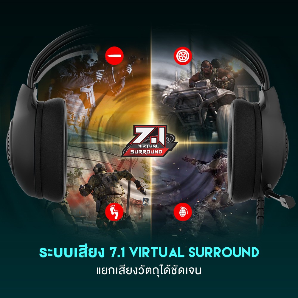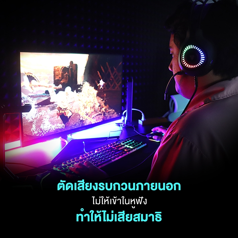 FANTECH หูฟังเกมมิ่ง ระบบ 7.1 Headset Gaming มีไมโครโฟน ไฟ RGB รอบหูฟัง สำหรับเกมแนว FPS,RTS,MOB รุ่น HG25