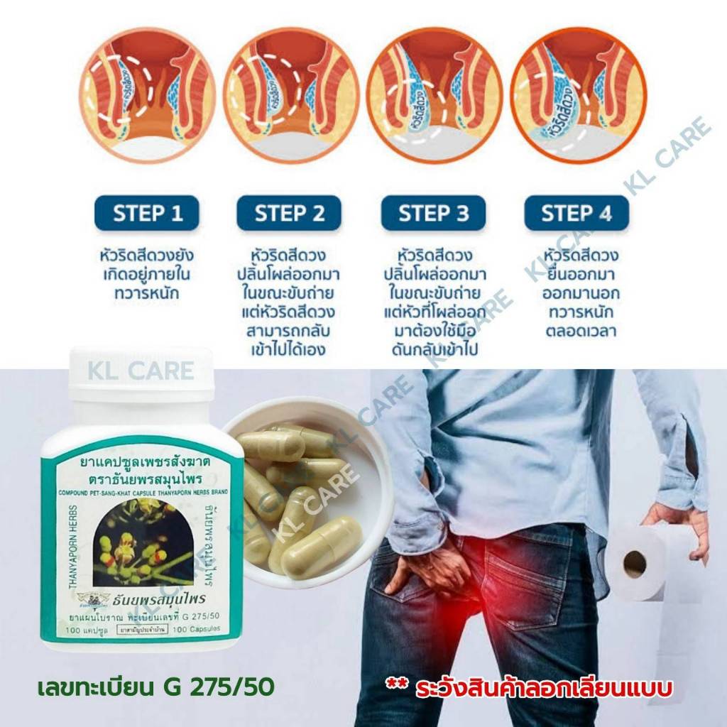 ยาริดสีดวงทวาร เพชรสังฆาต ริดสีดวง ยุบ หด ฝ่อ Hemorrhoids ธันยพรสมุนไพร 100 แคปซูล ของแท้100%