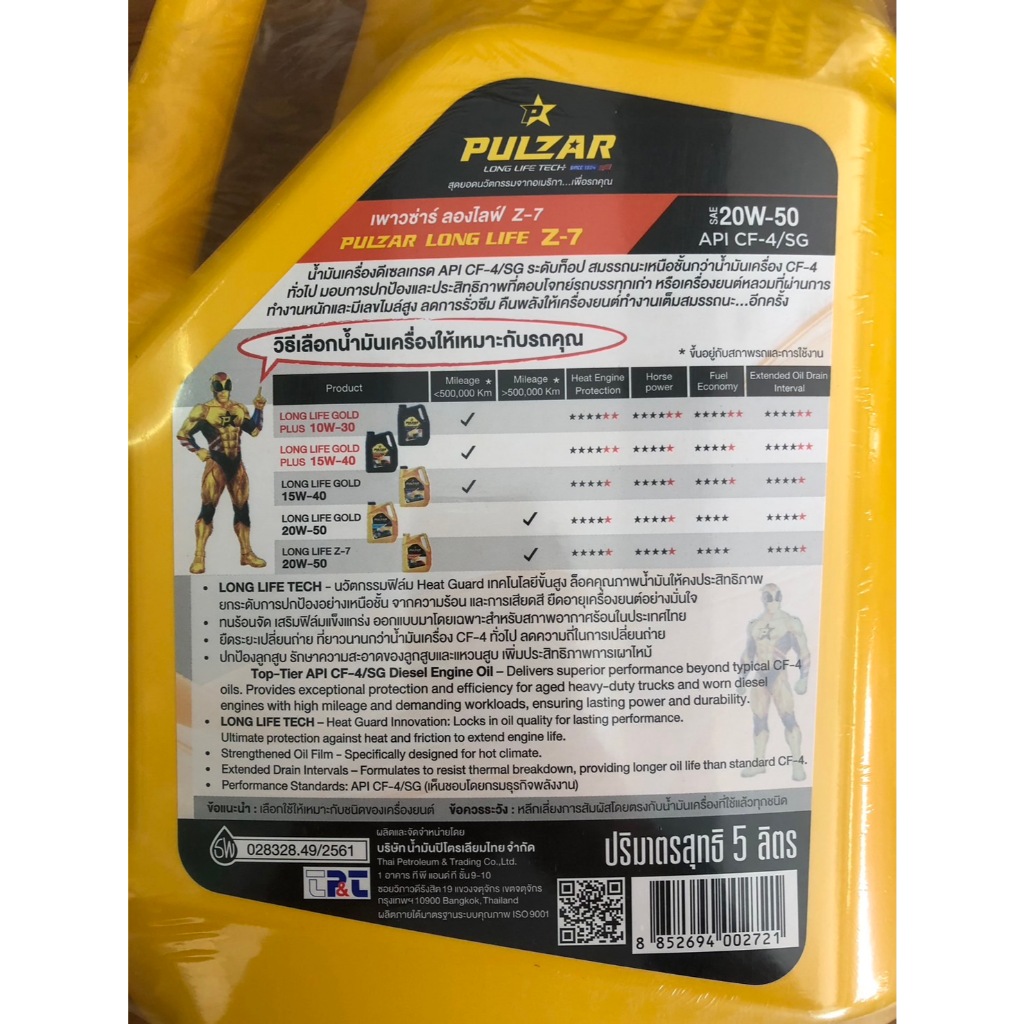น้ำมันเครื่อง PULZAR LONGLIFE Z-7 20W-50 ขนาด 5+1 ลิตร