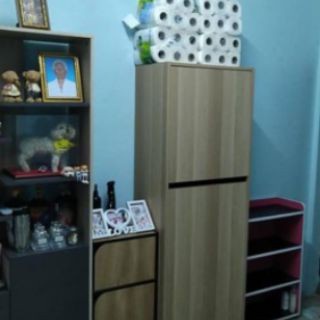 🔥ราคาถูก🔥Hawa 90 Furniture ตู้รองเท้า 10ชั้น บานบน-ล่าง 35*60*170ซม. 😊